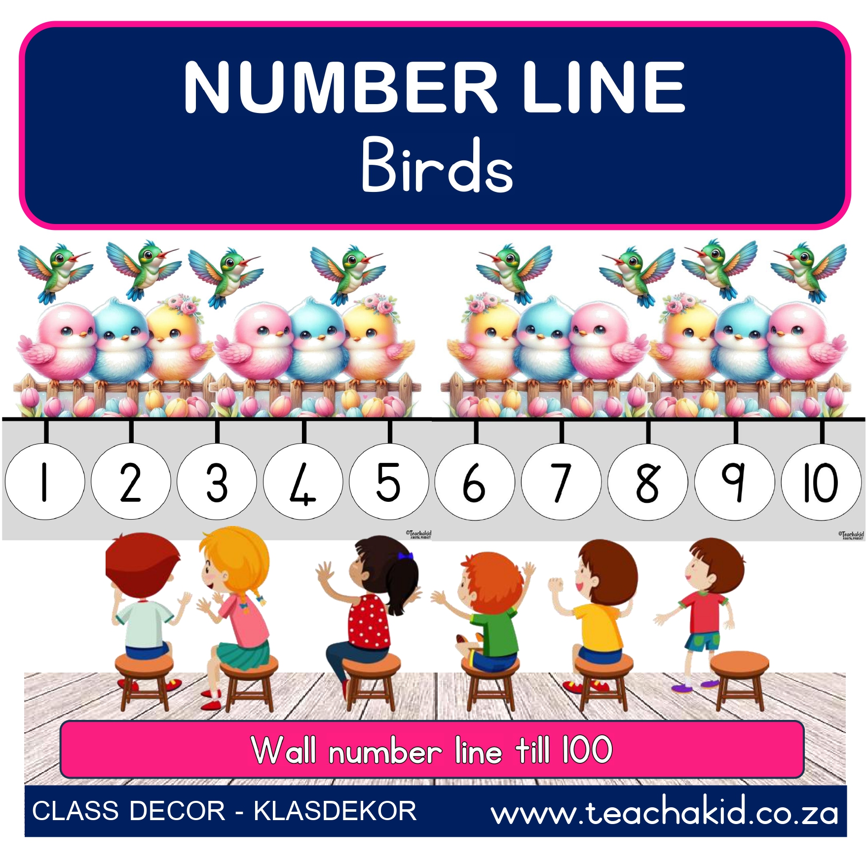 Duck themed number line displaying numbers 1 to 100 in large print.